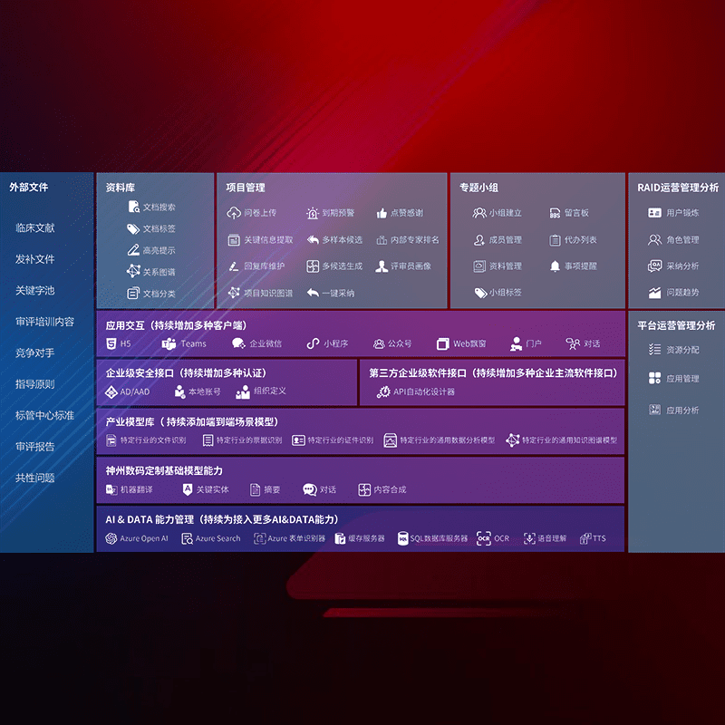 医疗器械产品上市前,,,,要熟悉严格与繁复评审标准,,整理分析监管机构指导文件中的海量信息。。。企业急需一个智能化解决方案,,,,提升知识管理效率,,,,提高评审通过率,,,,以提升其市场竞争力。。